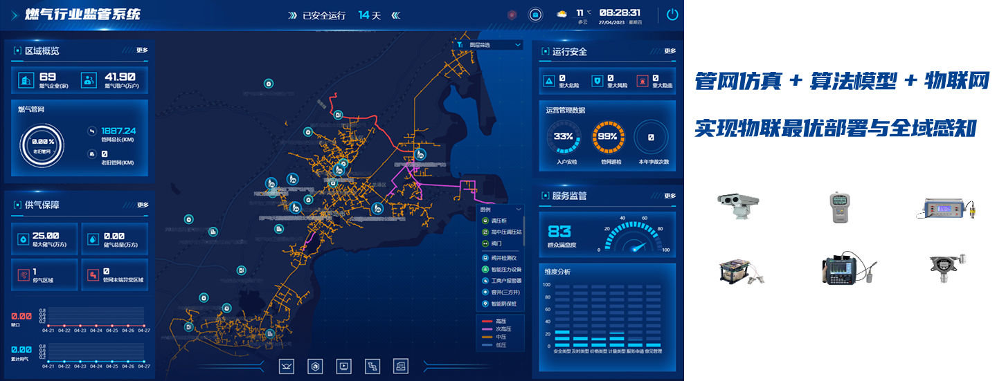 通过引入“存量补装,增量必装”的物联接入机制,逐步完善燃气管网、设备设施的物联建设。通过泛在智能物联终端感知实时状态;管网仿真及算法模型,实现物联最优部署;实时获取燃气安全数据,动态掌握燃气安全隐患情况,盘清家底。