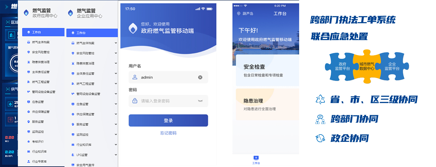构建跨部门执法的工单系统+联合协同处置系统的协同机制。涵盖监督监管、发现问题、整改执法、隐患销号、问题记录的全流程,提高执法专业度;联合应急处置系统形成跨部门及政企的协同。实现统一接警,关键信息统一分发;综合调度,资源、人力、行动统一指挥;解决安全隐患全流程、跨部门闭环处置不畅的问题。