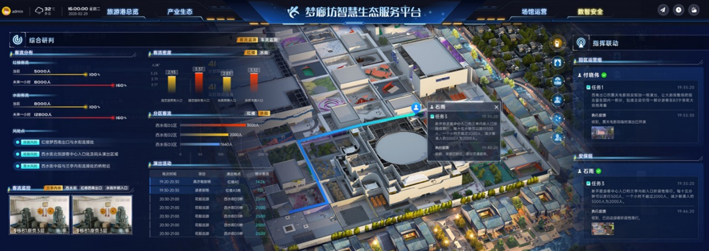 沙盘推演数智化风险防控能力,通过潮汐预测可以提前预估指定日期的人群与车流的规模与规律,基于智能能力,进一步预估当天不同时段人群聚集与车辆拥堵的特征,评估高风险区域,并配以相应的智能预案,实现对人的有效调度和物联的快速联动,实现风险精准防控,做到防患于未然。