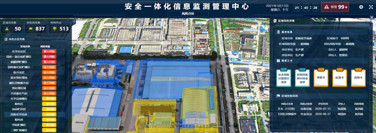 基于数字孪生、三维仿真技术,将安全业务管控进行集成整合,将业务与数据连通,实现实时可视化安全管控、物联控制、信息统计等,提供高效、易用、直观的安全管理多场景一站式闭环管理。