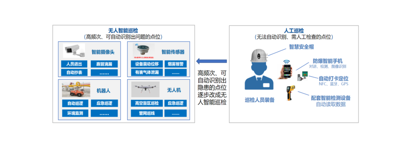基于新奥AI图像识别技术、人工智能和物联平台,采用无人巡检和人工巡检相结合的方式,实现不同生产场景下区域、设备、设施生产安全问题的辅助检测和智能诊断,降低人员能力要求。