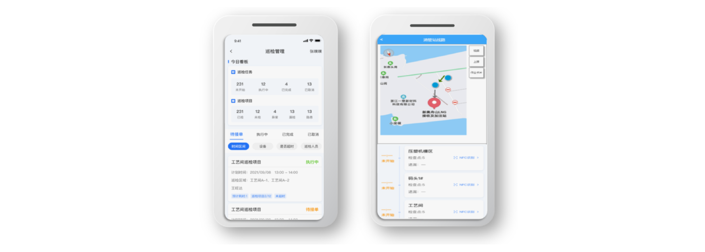 集成巡检机器人、视频等智能设备,按计划下发无人巡检任务,巡检结果自动采集和汇总;人工巡检包括离线巡检、巡检作业反馈、轨迹绘制等