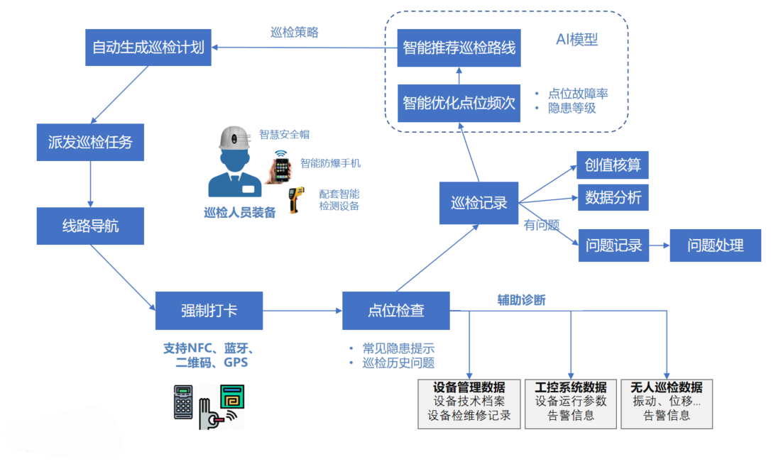 智能巡检系统的上线让我们摆脱了完全依赖传统人工巡检的困境,告别了高投入低效率的工作方式。有了智能设备与系统的辅助,不但巡检人员的工作流程更加科学高效,对人员的要求也大大降低,整个巡检流程都更加的规范与完善。——安全负责人